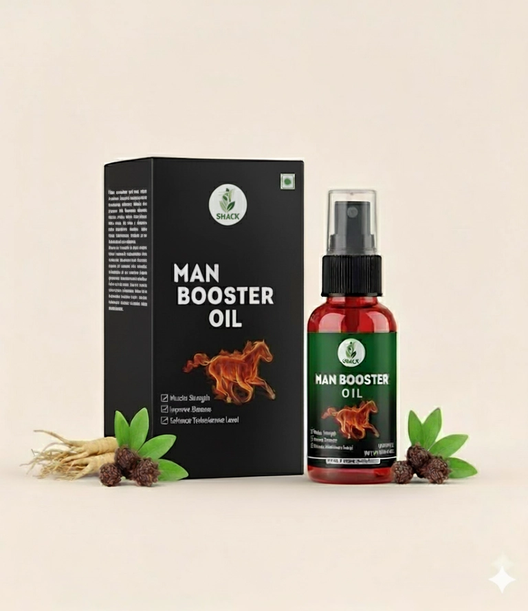 Shack Man Booster Oil is a premium herbal formulation designed to naturally enhance male performance, stamina, and confidence.
