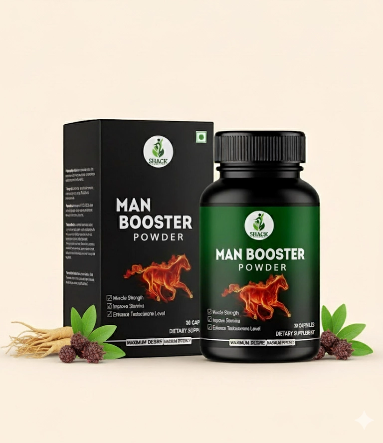 Shack Nutrition Man Booster Powder is a natural health supplement formulated specially for men who want to boost their energy, stamina, and strength.